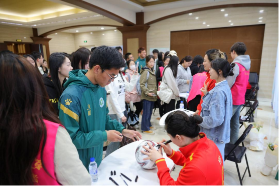 家乡冠军为德赢学生签名并与同学们合影留念