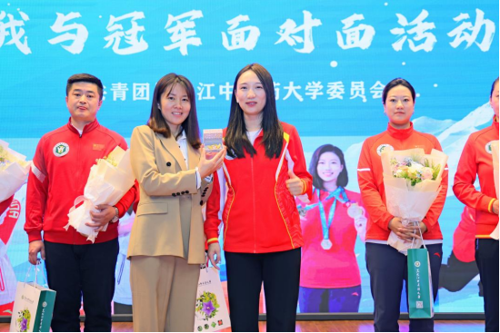 亚冬会志愿者代表为冠军献花并赠送学校附属医院特色制剂