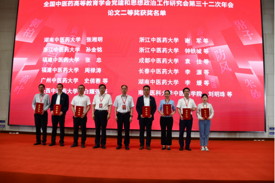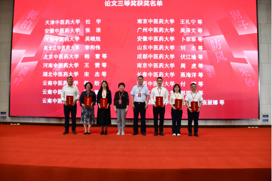 长春中医药大学党委副书记高文艺、浙江中医药大学党委副书记黄爱军为优秀论文三等奖获得者代表颁奖