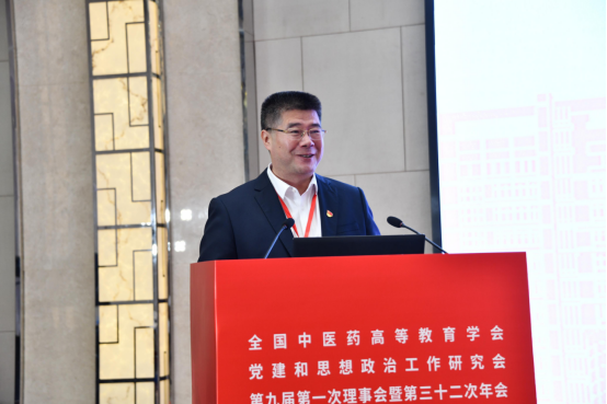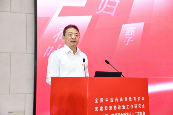赵炜明代表承办单位致辞。他介绍了vwin德赢ac米兰官网建校70年来以国家战略为契机,抢抓机遇、乘势而上,在推进“双一流”建设过程中取得的成绩。他指出,全国中医药高等教育学会党建和思想政治工作研究会年会是中医药高等教育党建与思想政治工作层次最高、最具影响力的年度盛会,希望与会领导、专家通过本次会议充分研讨和交流,形成共识和互相交流的经验,促进全国高等中医药院校促进党建和思政工作守正创新,为进一步抓好时代新人铸魂工程注入更为强大的精神动力。