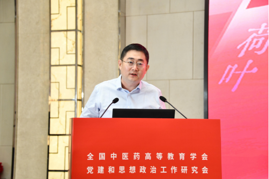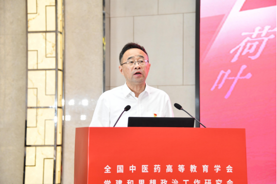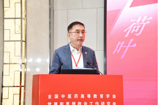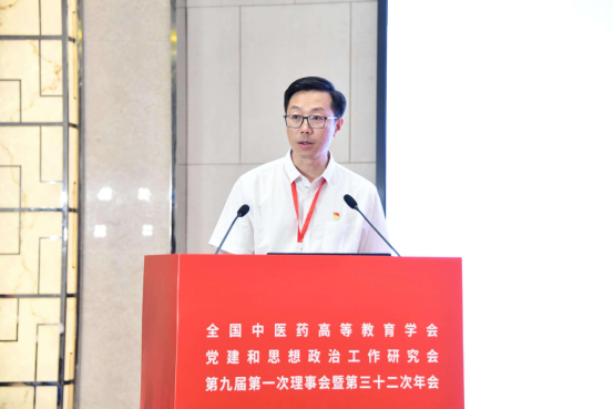 林成涛同志在线上参会。他指出,在新时代教育强国建设中,高等中医药院校党建和思想政治工作者要牢记“国之大者”,守初心、担使命、善作为,奋力谱写中医药高等教育高质量发展新篇章。一是要强化政治担当,推动党的创新理论武装走深走实;二是要加强党的建设,推动党建与事业发展“一融双高”;三是要坚持立德树人,推动思想政治工作提质增效;四是要深化研究探索,推动党建和思想政治工作守正创新。他希望广大高校党建和思政工作者进一步发挥培养担当民族复兴大任的时代新人的使命,在加快建设教育强国、深入实施健康中国战略中作出应有的贡献。