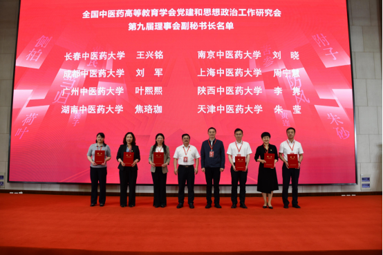 湖南中医药大学党委书记戴爱国、南京中医药大学党委书记乔学斌为第九届理事会副秘书长颁发聘书