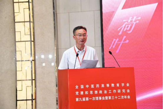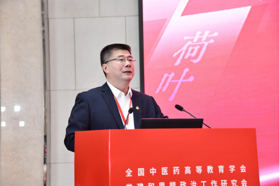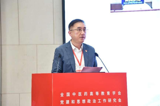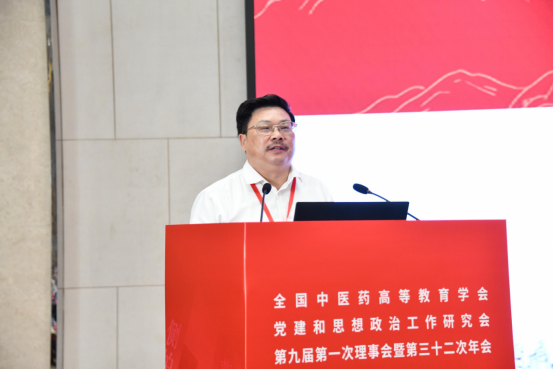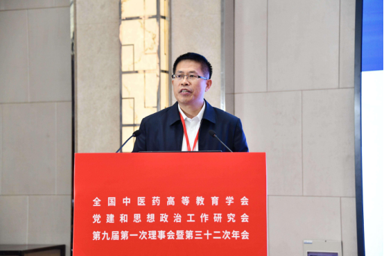 江西中医药大学党委委员、副校长周志刚作题为《党建引领 思政赋能 努力办好人民满意的中医药高等教育》的报告