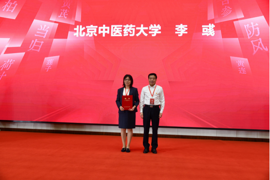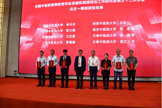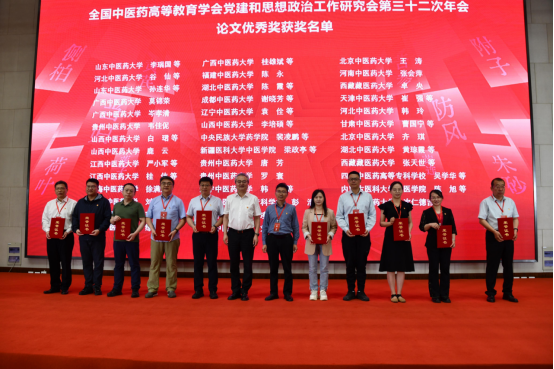 天津中医药大学党委书记刘革生、云南中医药大学党委书记邱勇为优秀论文一等奖获得者代表颁奖
