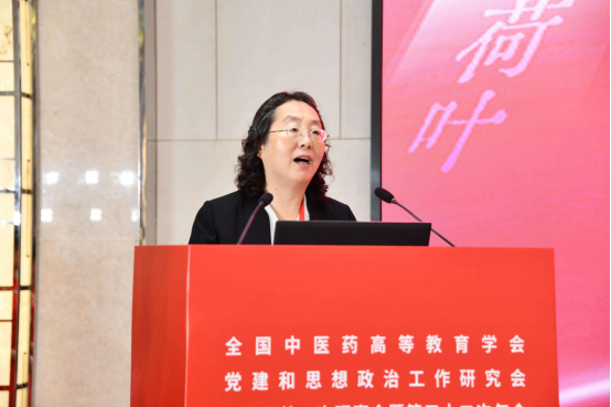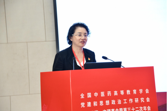 北京中医药大学党委书记王瑶琪作题为《精心实施文化建设“六项工程” 持续擦亮“全国文明校园”亮丽名片》的报告