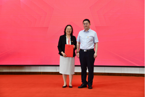 成都中医药大学党委书记刘毅、长春中医药大学党委书记江凤艳为第九届理事会理事颁发聘书