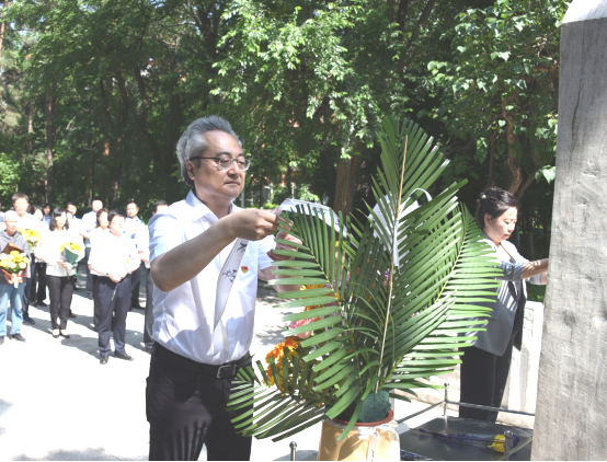 学校党委书记赵炜明、哈尔滨烈士陵园副主任王晓辉为烈士敬献花篮