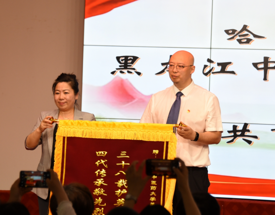 王晓辉代表哈尔滨烈士陵园为德赢专家团队赠送锦旗,感谢学校长期以来对烈士遗首维护工作的大力支持。