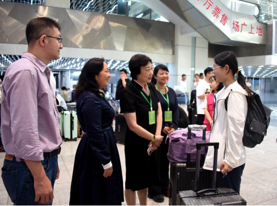 乔广霞到哈尔滨西站接站处慰问新生及家长