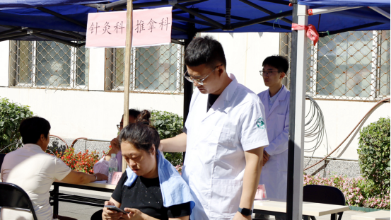 各学院设立义诊志愿服务区,为远道而来的新生和家长提供推拿按摩服务,缓解他们的旅途疲劳