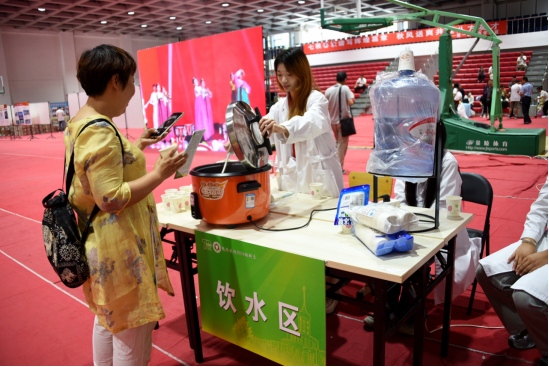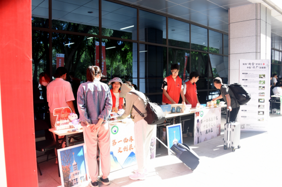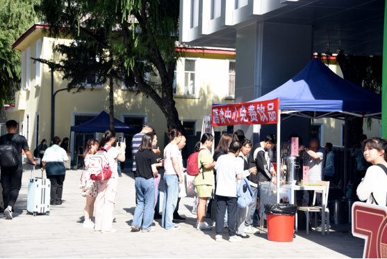学校设立多处赠饮点,为新生和家长提供酸梅汤、姜枣茶