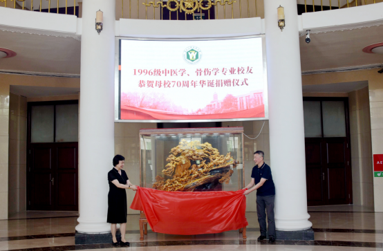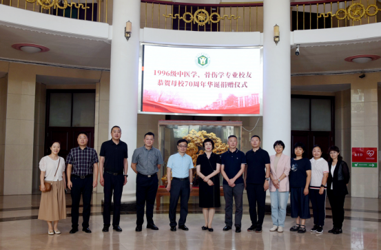 8月31日,1996级中医学、骨伤学专业和1999级中医学专业的校友们向母校捐赠,为学校70周年华诞表达了最诚挚的祝福。学校党委副书记、工会主席乔广霞出席捐赠仪式。