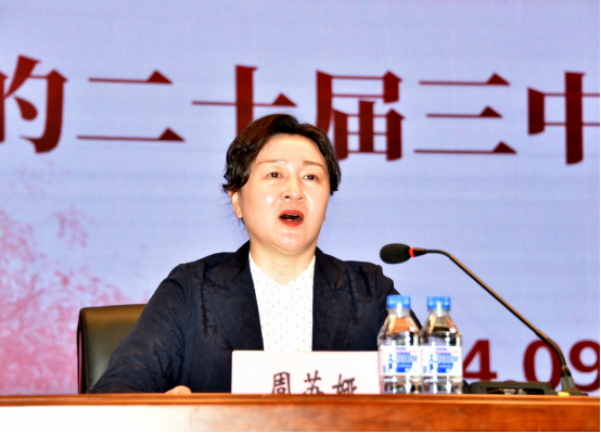周苏娅从深入学习领会习近平总书记在党的二十届三中全会上的重要讲话精神、全面准确理解《中共中央关于进一步全面深化改革、推进中国式现代化的决定》提出的进一步全面深化改革重大举措、深入把握省委贯彻落实党的二十届三中全会精神的主要安排、以钉钉子精神全力抓好改革任务落实等四个方面,全面剖析、详细解读了党的二十届三中全会精神。