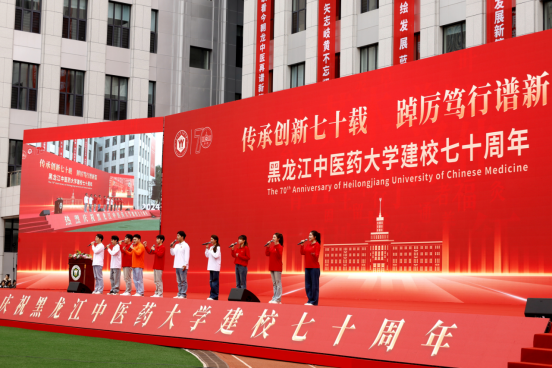 校长郭宏伟致辞。代表学校向关心支持学校发展的各位领导和各界朋友致以崇高的敬意和衷心的感谢,向全校师生员工和海内外校友致以亲切的问候和最美好的祝福。郭宏伟指出,七十年来,学校始终秉承“勤奋、求真、博采、创新”的校训精神,实现了一个又一个奋斗目标,从更名vwin德赢ac米兰官网,到两次获批成为省“高水平大学和优势特色学科建设高校”,再到获批为黑龙江省人民政府与国家中医药管理局共建高校,全体龙中医人以艰苦奋斗之精神、争创一流之壮志,坚守于祖国北疆,用实际行动忠诚践行着“传承创新中医药事业”的豪迈誓言。他表示,七十年来,学校坚守的是立德树人、厚德载物的育人初心;发扬的是勇攀高峰、精益求精的创新精神;践行的是大医精诚、勇担使命的济世仁心;担负的是以文化人、赓续中医药文化的传承使命;坚持的是攻坚克难、爱校如家的赤子情怀。学校在未来发展建设的新征程上,会继续砥砺前行、踔厉奋发,在习近平新时代中国特色社会主义思想的指引下,胸怀“国之大者”,围绕国家所需、龙江所要、学校所能和未来所向,全面深化中医药人才培养、切实提升科技创新与服务水平、进一步加强中医药服务与文化传承,加快建设特色鲜明的国际有一定影响、国内一流的中医药大学,在全面建设社会主义现代化国家新征程中,在谱写中国式现代化龙江新篇章的生动实践中,展现vwin德赢ac米兰官网的新作为,作出七秩学府的新贡献。
