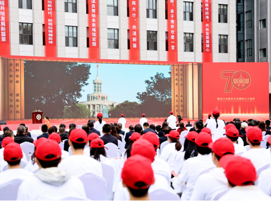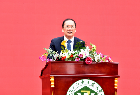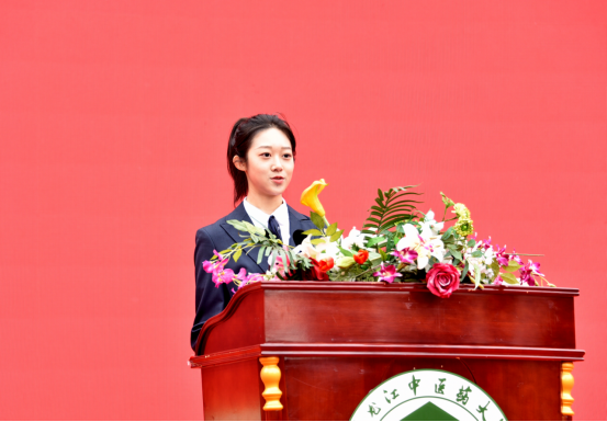 青年学生代表、2021级“中医学5+3一体化”专业硕士沈佳琦在发言中表示,在70周年校庆的日子,广大同学感到无比激动和自豪。作为新时代的中医药学子、新征程上的龙中医人,同学们将秉承“勤奋、求真、博采、创新”的校训精神,以传承中医药精华、造福人类健康为己任,以大医精诚、止于至善为依归,勇毅前行,不辱使命,在学校新征程上续写属于自己的篇章。