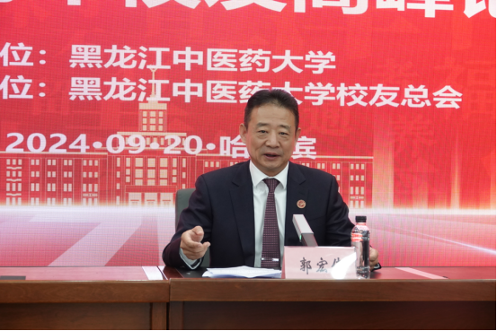 郭宏伟致开幕辞,代表学校向远道而来的校友及嘉宾表示衷心的感谢和热烈的欢迎,向与会校友们介绍了学校近年来在教学、科研及医疗领域取得的优异成绩。他指出,学校建校70年来,向社会输送了大批优秀的中医药学专业人才,贡献了龙中医人卓越的中医药智慧,在推动“健康龙江”建设和龙江振兴发展中发挥了重要作用,为经济社会发展注入了澎湃的龙中医动力。70年来,龙中医数以万计的毕业生遍布世界各地,用自己的专业和底蕴向世界传播中医药文化,担负起国民健康守护者的重任,为国家卫生健康事业和祖国中医药事业发展作出了应有的贡献,为学校赢得了社会的广泛认可及良好声誉,成为学校一张张靓丽的名片。他希望广大校友能够持续利用好校友会平台,分享心得,交流经验,彼此借鉴,相互成就,共谋发展,凝聚起坚如磐石的校友力量,齐心协力推动母校和校友双向赋能,高质量发展,共创新时代龙中医新辉煌。