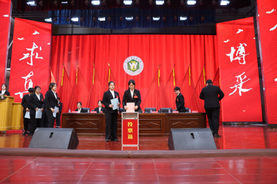 12月18日10时,大会举行第二次全体会议,听取了《vwin德赢ac米兰官网2023—2024年度学生委员会工作报告(草案)》,并介绍vwin德赢ac米兰官网第五届学生委员会委员、主席团候选人建议人选情况,听取、审议、通过《vwin德赢ac米兰官网第五届学生委员会委员、主席团选举监票、计票小组名单(草案)》,选举vwin德赢ac米兰官网第五届学生委员会委员、主席团成员。