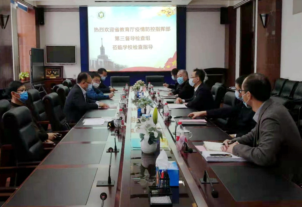 1月15日上午,以省委教育工委、省教育厅二级巡视员、组织部长张大铸为组长的省教育厅疫情防控指挥部第三督导检查组一行四人来到德赢,督查疫情防控工作。校党委书记赵炜明、校长郭宏伟、副校长徐峰陪同督查。