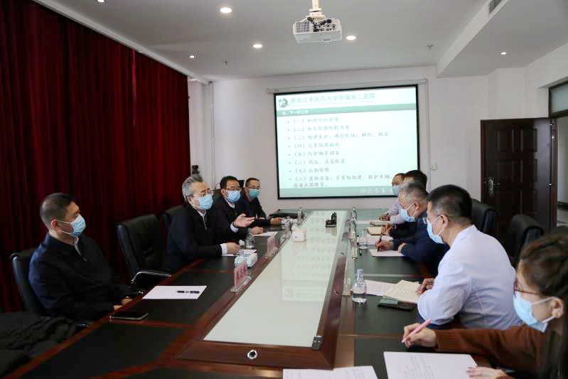 赵炜明听取了附属第二医院南院关于黑龙江省集中救治定点医院启动工作的汇报。他在讲话中强调,附属第二医院拥有一支政治素质高、业务能力强,敢打敢拼、善做善成的优秀中医药队伍。此次启动省集中救治定点医院工作使命光荣,任务艰巨。全院上下必须慎终如始、再接再厉,坚持精准防控和应急处置有机结合,严防院内感染,切实做到防控责任压实到位、个人防护落实到位、后勤服务保障到位。尤其要加强职工自我防护意识和自律性,强化疫情相关培训工作,筑牢这场疫情阻击战的大防线,守护好人民群众和教职员工的生命安全和身体健康,圆满完成省集中救治定点医院各项任务,为我省疫情防控工作做出积极贡献。