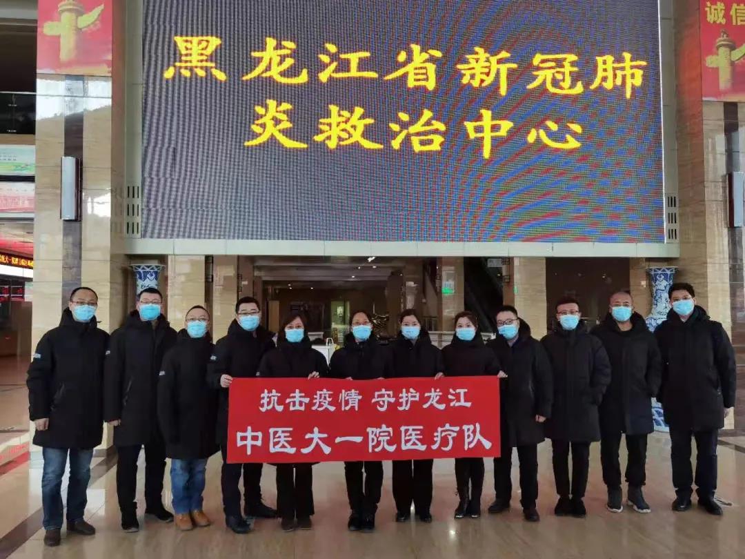 附属第一医院派出的一支由12名中医专家组成的医疗队,于1月21日开始在哈医大一院群力院区(黑龙江省新冠肺炎救治中心)开展中医药救治工作。在医疗队队长、医院呼吸科副主任隋博文带领下,专家们第一时间进入病区,逐一对新冠患者查房,采集舌诊、脉诊信息,并配合国家中医药管理局专家组一同开展新冠肺炎患者的中医救治工作。他们不分昼夜连续奋战,做到“一人一方”、辨证施治,指导临床应用中药汤剂、中成药及中药注射剂,使中药覆盖率达100%。专家们还采用回阳救急之法,积极参与救治危重症患者。同时,根据患者病情,合理指导患者进行运动锻炼,带领患者做八段锦、易筋经等中医传统健身功法;针对儿童及轻症患者,采用中药代茶饮、佩戴中药香囊,给予中医食疗指导。