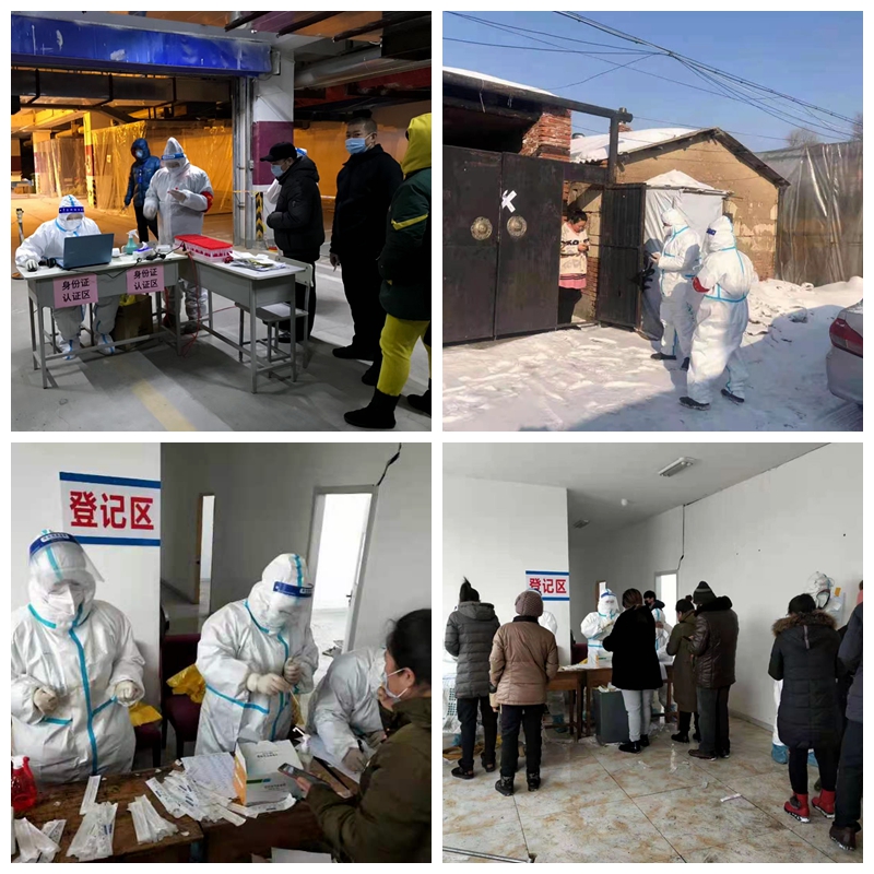 附属第二医院先后派出3批共102名医护人员驰援哈尔滨市南岗区、平房区、呼兰区和利民开发区的30余个社区、村屯开展核酸检测工作,共计采样近10万人。其中,南岗区共计检测61200人,医护人员们日夜坚守在一线,52个小时不间断采样,圆满完成了支援任务。该院南院正在紧张进行省集中救治定点医院前期准备工作,但1月21日接到支援平房区核酸采集工作任务后,迅速组织30名医护人员赶到平房区各社区12个核酸采集点,并于24日圆满完成了32632人的核酸检测采样工作。