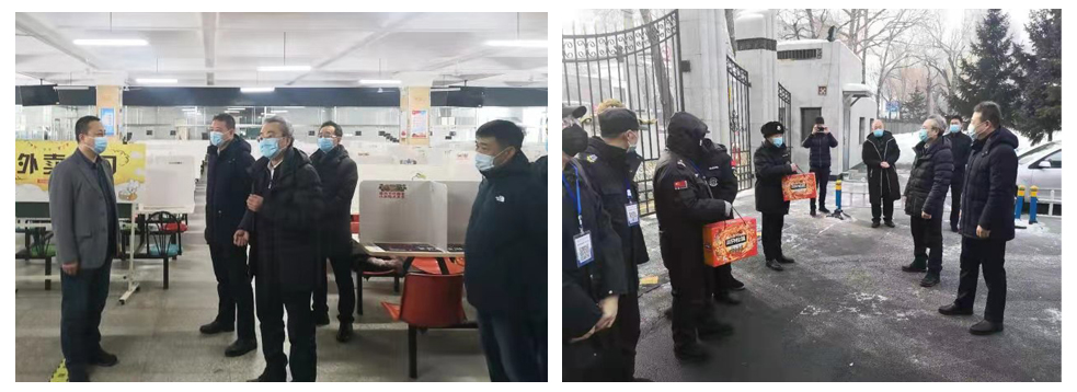 在食堂、供电部、门岗,校领导对后勤和安保人员的敬业精神和无私奉献表示感谢,嘱咐大家一定要确保食品安全,认真做好后勤保障工作和校园安全保卫工作,同时希望大家合理安排好工作时间,注意劳逸结合,过一个欢乐、祥和新春佳节。工作人员感受到学校的殷切关怀,纷纷表示一定会站好岗、值好班,圆满完成各项工作任务。