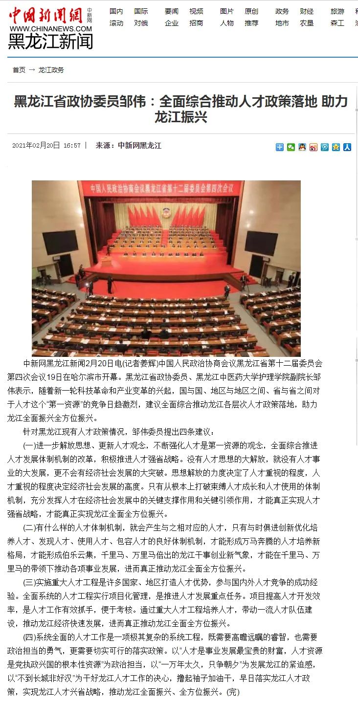 省政协委员邹伟:全面综合推动人才政策落地,助力龙江振兴