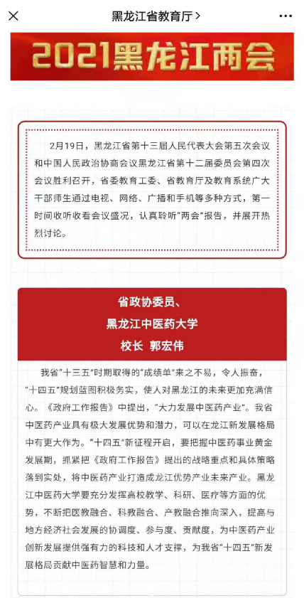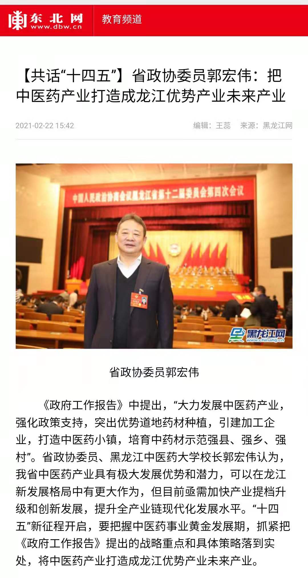 省政协委员郭宏伟:加快推进我省中医药事业高质量发展,把中医药产业打造成龙江优势产业未来产业