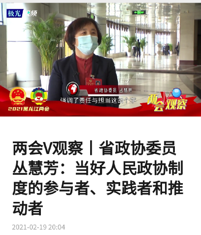 省十三届人大五次会议、省政协十二届四次会议2021年2月19日至22日期间在哈尔滨召开。驻德赢省政协委员履职尽责,在全省“两会”上积极建言献策。中国新闻网、黑龙江日报、黑龙江网、龙头新闻、极光新闻等多家媒体对他们进行了采访和报道。