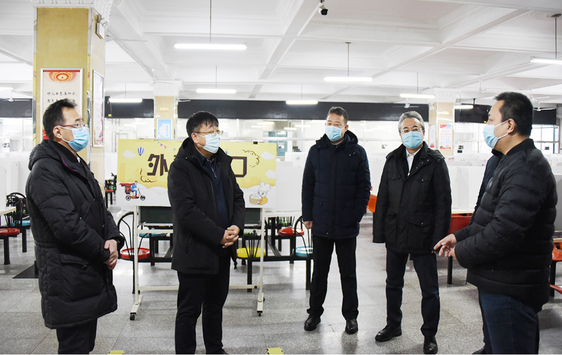 工作汇报会结束后,调研检查组一行深入学校食堂、宿舍等地,进行实地督导。学校相关单位负责人陪同检查。