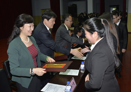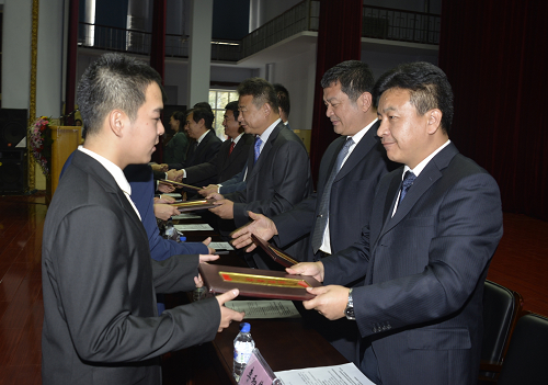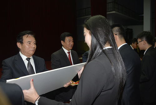 校领导班子成员为获得表彰的集体和个人的代表颁奖。