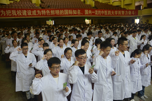 校长、博士生导师孙忠人教授代表学校向2114名来自祖国各地的2016级本科生表示欢迎和问候,向培育新生的老师和家长们致以敬意和感谢,向受表彰的集体和个人表示衷心的祝贺。他向新同学们简要介绍了学校建校60多年来的历史和取得的成就,并勉励同学们要珍惜来之不易的奋斗结果和学习机会,珍惜自己的美好青春和大好前途,把vwin德赢ac米兰官网看做人生的一个新起点,在这里勤奋学习、不断创新,为祖国中医药事业美好的明天拼搏奋进。他对2016级新同学提出几点希望:一是希望同学们怀揣梦想、志存高远。大学之道不仅在于求知,还在于“承国家兴亡、担民族兴旺”的责任,这也是青年学子读书求学的根本意义所在。习近平总书记强调“中国梦是国家的、民族的,也是每一个中国人的。”希望同学们勇敢肩负起时代赋予的重任,把个人的梦想同全民族的共同梦想结合起来,把个人成长成才融入到祖国和人民的伟大事业之中。二是希望同学们刻苦学习,练就过硬本领。人的一生可以分成几个时期,每个时期的首要任务各不相同,青年大学生正处于学习的黄金时期,应该把学习作为首要任务,刻苦钻研,努力学习。特别是中华医药典籍浩如烟海、博大精深,对中医药经典著作非精读不能领会其道理、非多读不能融会贯通掌握其要旨,同学们学习的任务也会更为繁重。希望同学们树立牢固的专业思想,发奋努力,扎扎实实地学好基础知识,积极掌握技能,练就过硬本领,不断提高与时代发展和事业要求相适应的素质和能力。三是希望同学们提高修养、锤炼高尚品格。一个人若想成就一番事业,不仅要有丰富的知识、过硬的本领,而且要有高尚的情操、顽强的意志和健全的人格。尤其对中医药学子来说,你们未来所从事的职业是人民群众的“健康所系,性命相托”,希望同学们在大学学习期间,谨记医学生誓言,深刻认识医疗工作的特殊地位,从现在做起、从小事做起,“勿以善小而不为,勿以恶小而为之”,不断加强修养,锤炼高尚品格,自警自省、自励自强,自觉培养与中华民族传统美德相承接的优秀品格,努力成为品行高尚、全面发展的优秀人才。