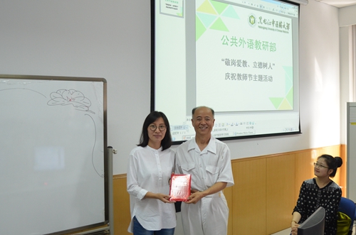 喜迎第32个教师节,9月7日上午,公共外语教研部组织全体教师开展以“敬岗爱教、立德树人”为主题的教师节庆祝活动。