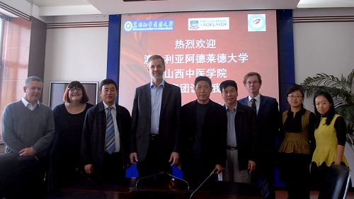 | 阿德莱德大学代表团由阿德莱德大学怀特校区农学院助理教授 Ken Chalmers(左一)、阿德莱德大学国际科研与合作主任Sandy McConachy(左二)、阿德莱德大学怀特校区校长Michael A Keller 教授(左四)、阿德莱德大学国际健康研究中心主任 Michael Davies 教授(右三)组成。山西中医学院副院长冯前进教授(右四)作为中方合作伙伴代表参加了会谈。 |